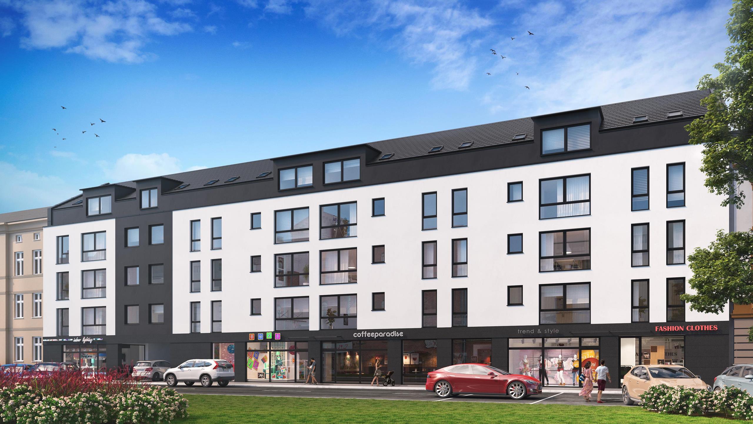 Sześciokondygnacyjny apartamentowiec w sercu Koszalina. Inwestycja, której realizacja zakończyła się jesienią 2021 roku. Najnowsze technologie, eleganckie materiały wykończeniowe, wysoki standard.